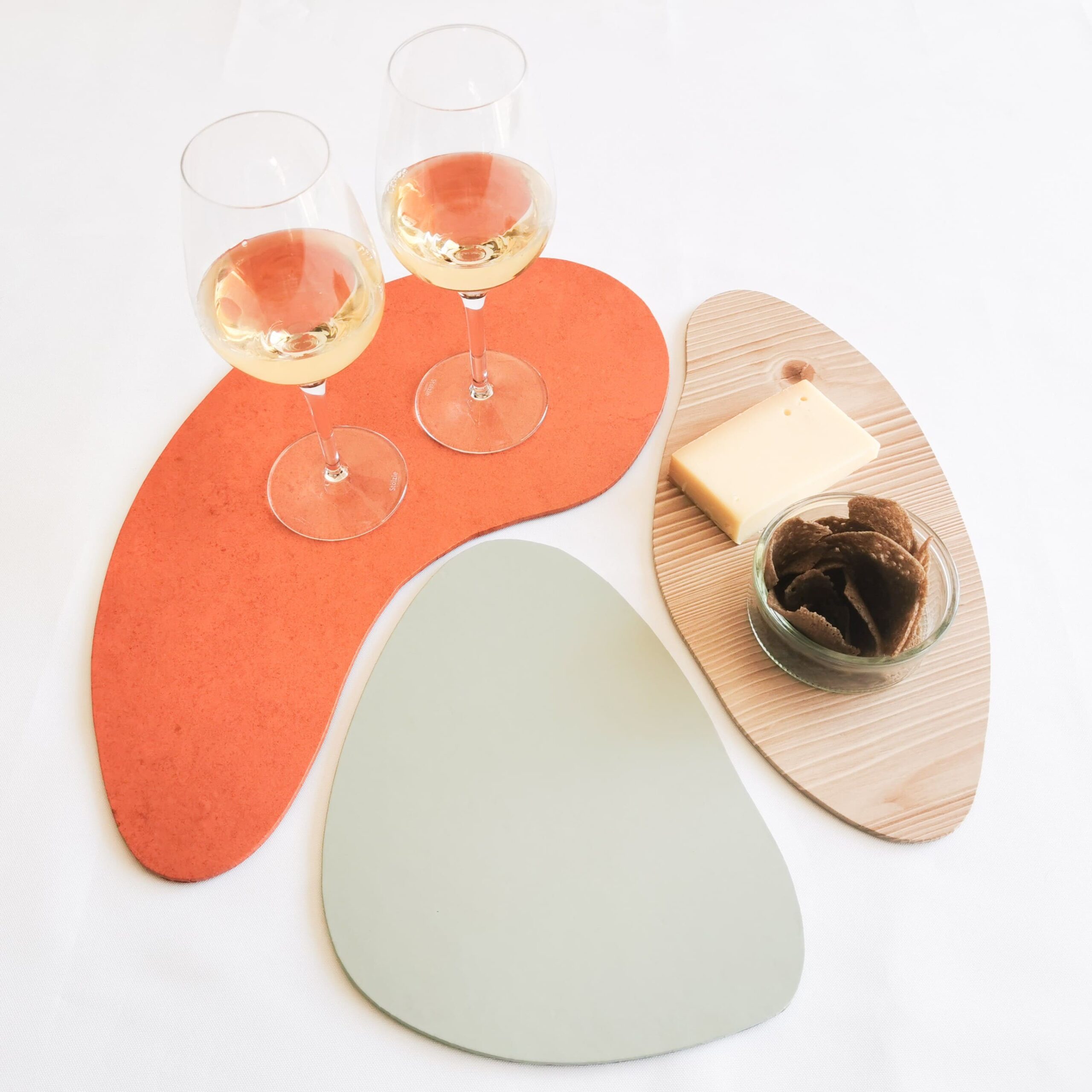 Pour compléter votre table de réception, un plateau apéritif ou des sets de tables et sous-verres est également disponibles. Très pratique, il est idéal pour déposer les verres de vos convives sans abimer la table.
