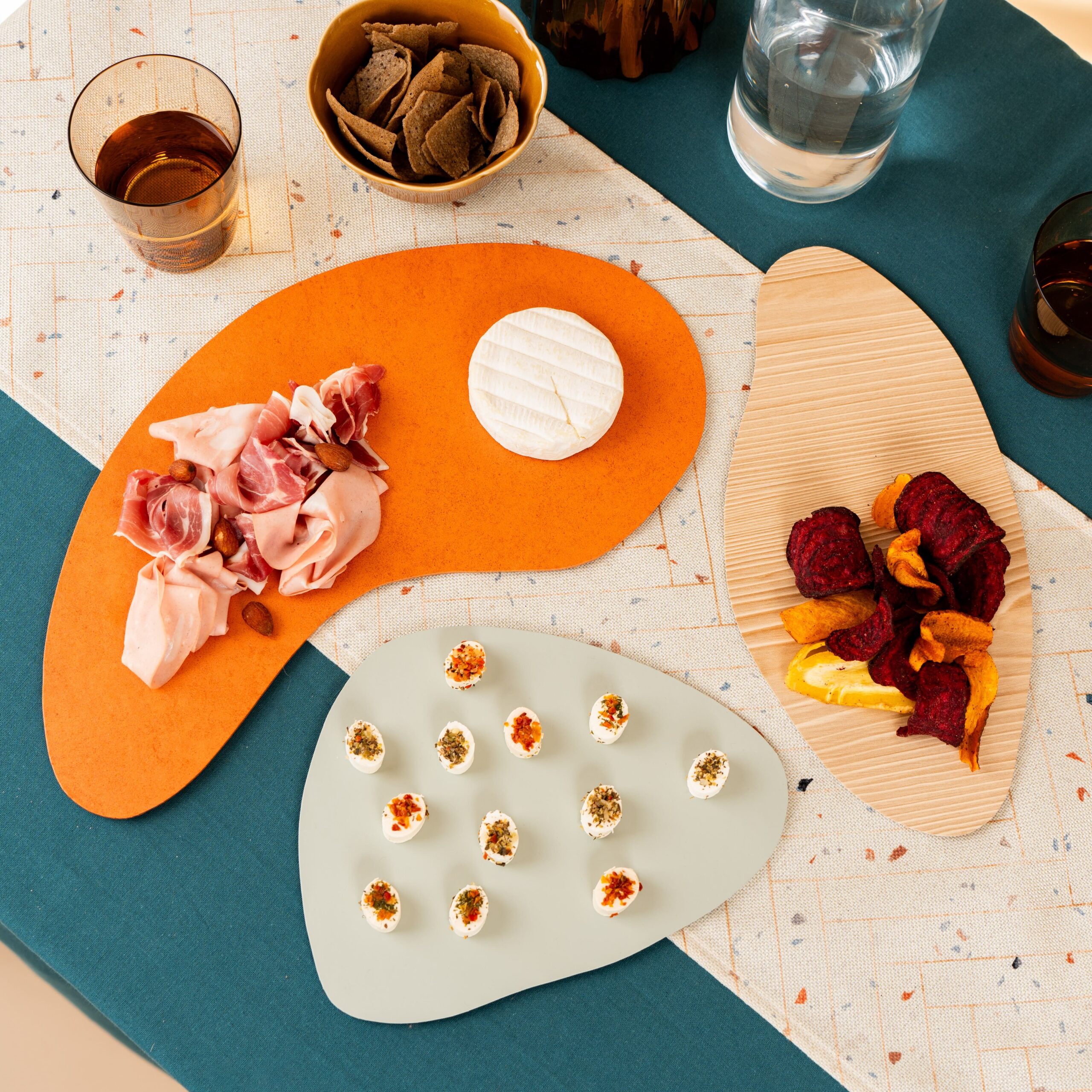 Palet, ce sont 3 assiettes de présentation provençal, de forme abstraites.